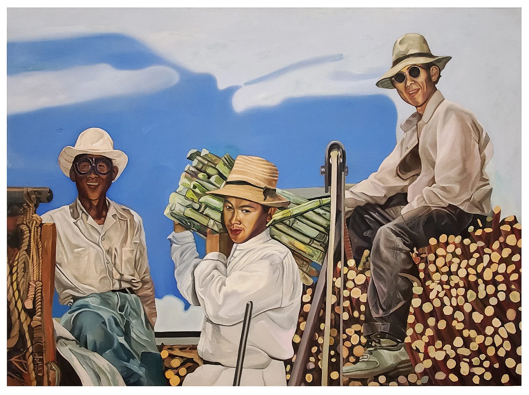Dominic Mangila’s solo exhibition “Pastures of Plenty” features a series of works that combines history painting and meta-narrative of the Manong Generation (Filipino immigrant farm workers in the United States in the early 20th century). “Pastures of Plenty” is culled from the song of the same title by Woodie Guthrie which describes the travails and dignity of migrant workers in North America.